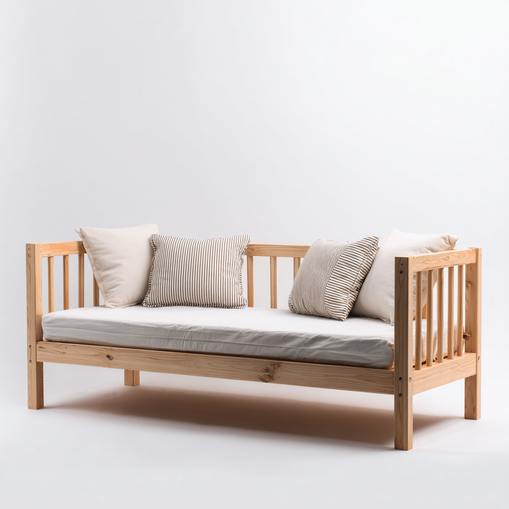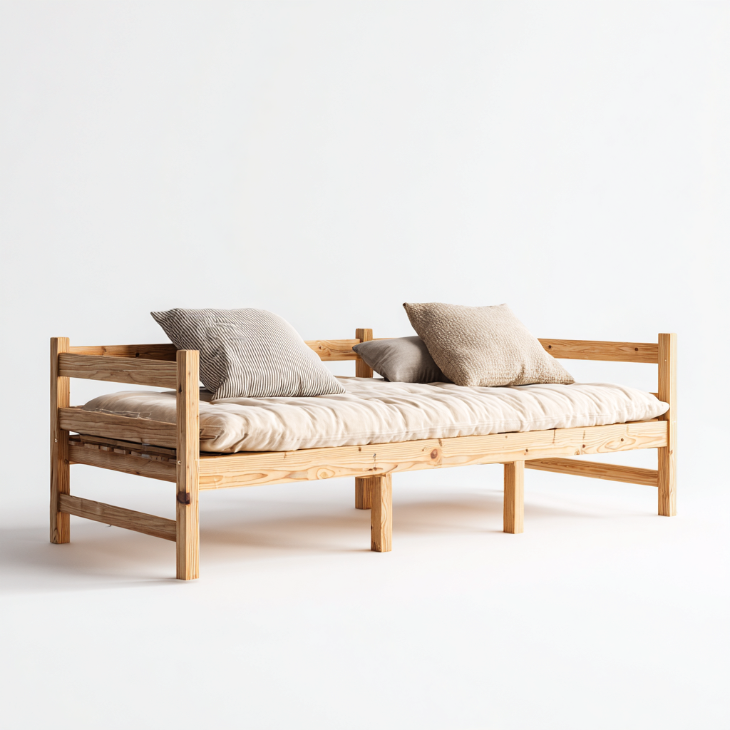 Divano letto in legno 200x80x85 cm - legno naturale - stile minimalista per soggiorno