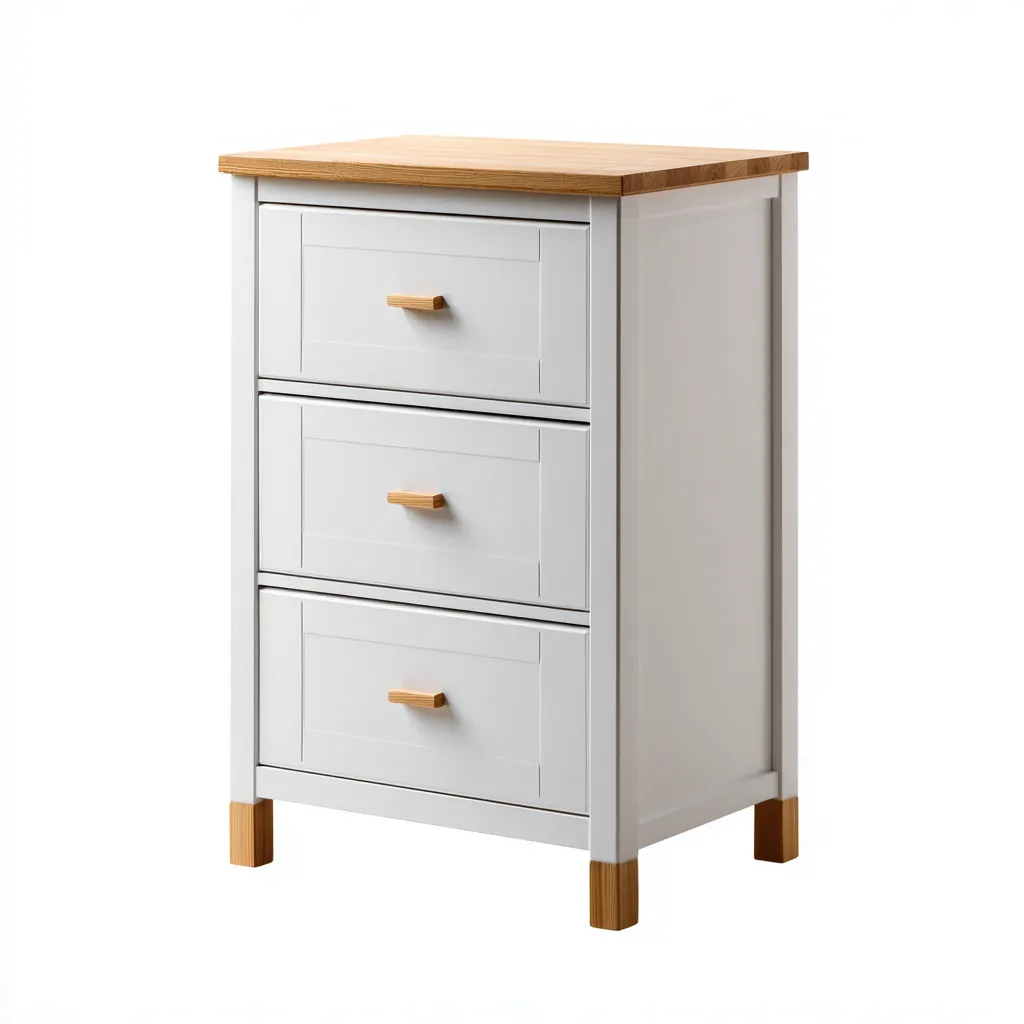 Comodino in legno 45x35x75 cm - bianco e legno naturale - design moderno
