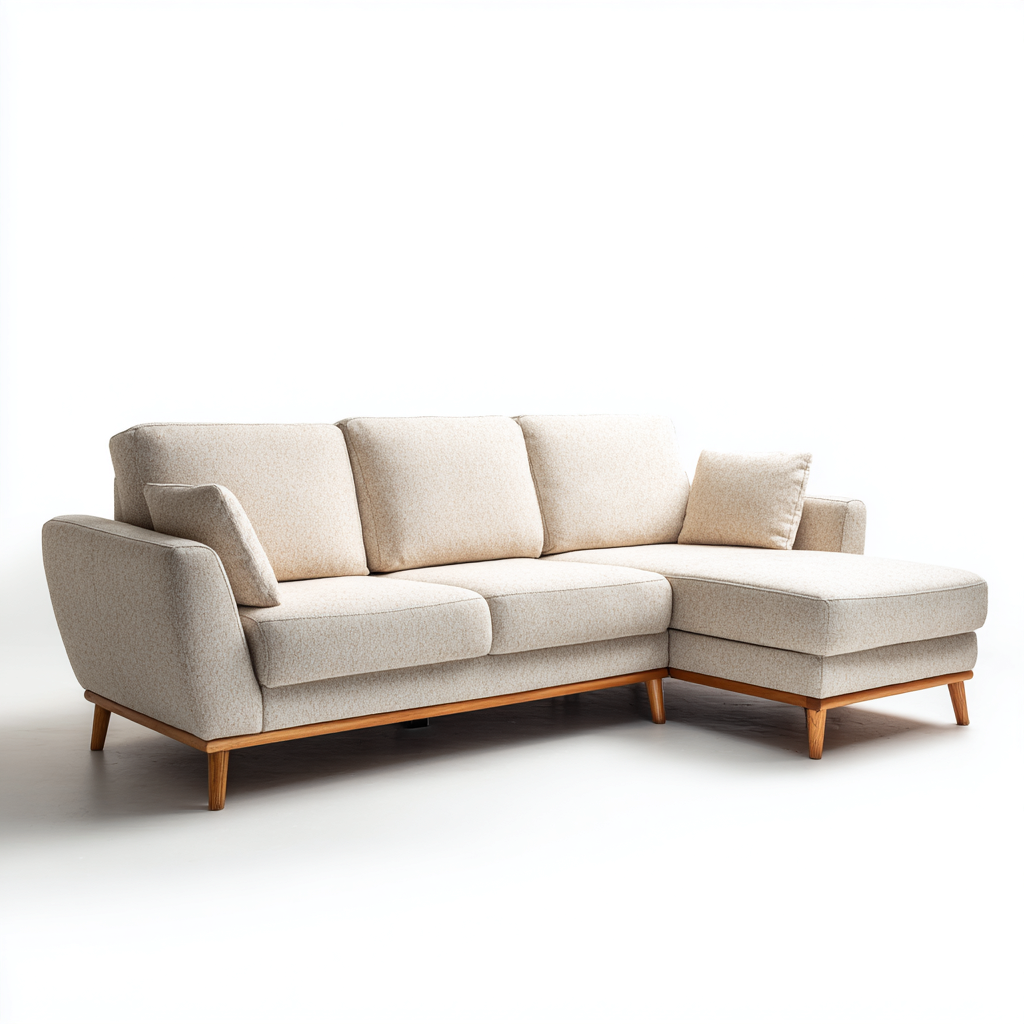Divano angolare in tessuto e legno 255x160x85 cm - beige-legno naturale - design moderno per soggiorno