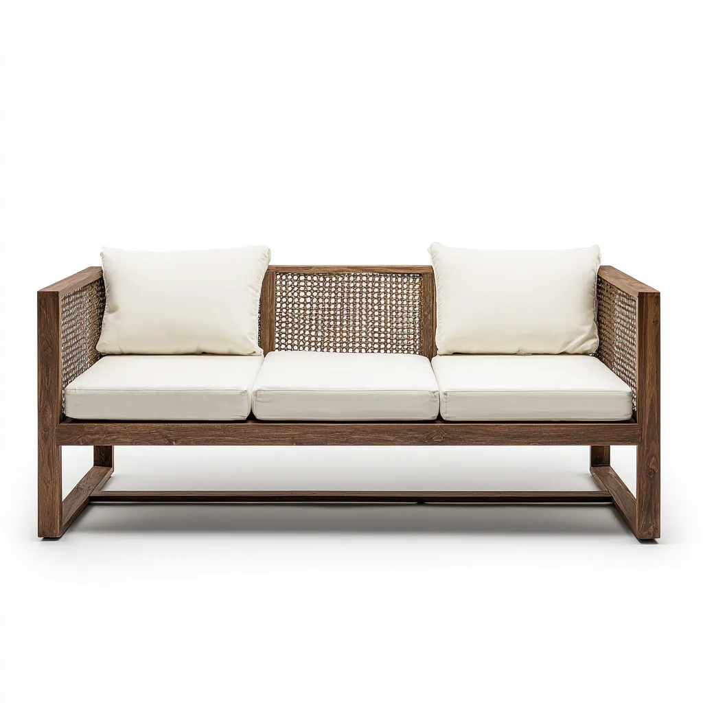 Divano da esterno in legno e rattan 165x70x78 cm - crema-marrone - design moderno per giardino