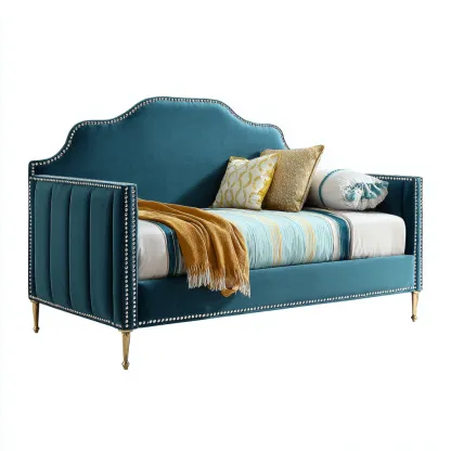 Divano letto velluto-metallo 210x90x120 cm - blu - design moderno