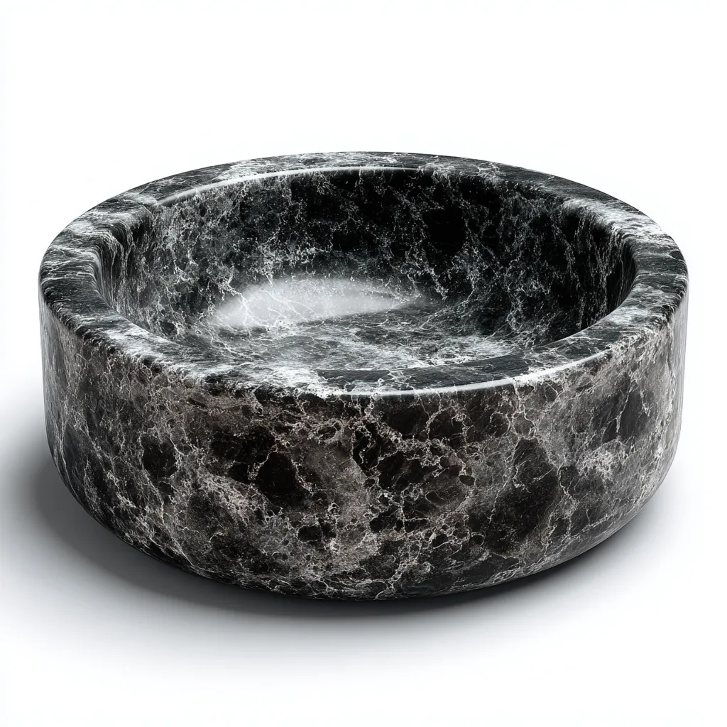 Lavabo in pietra naturale 40x40x15 cm - nero - lavabo da appoggio rotondo