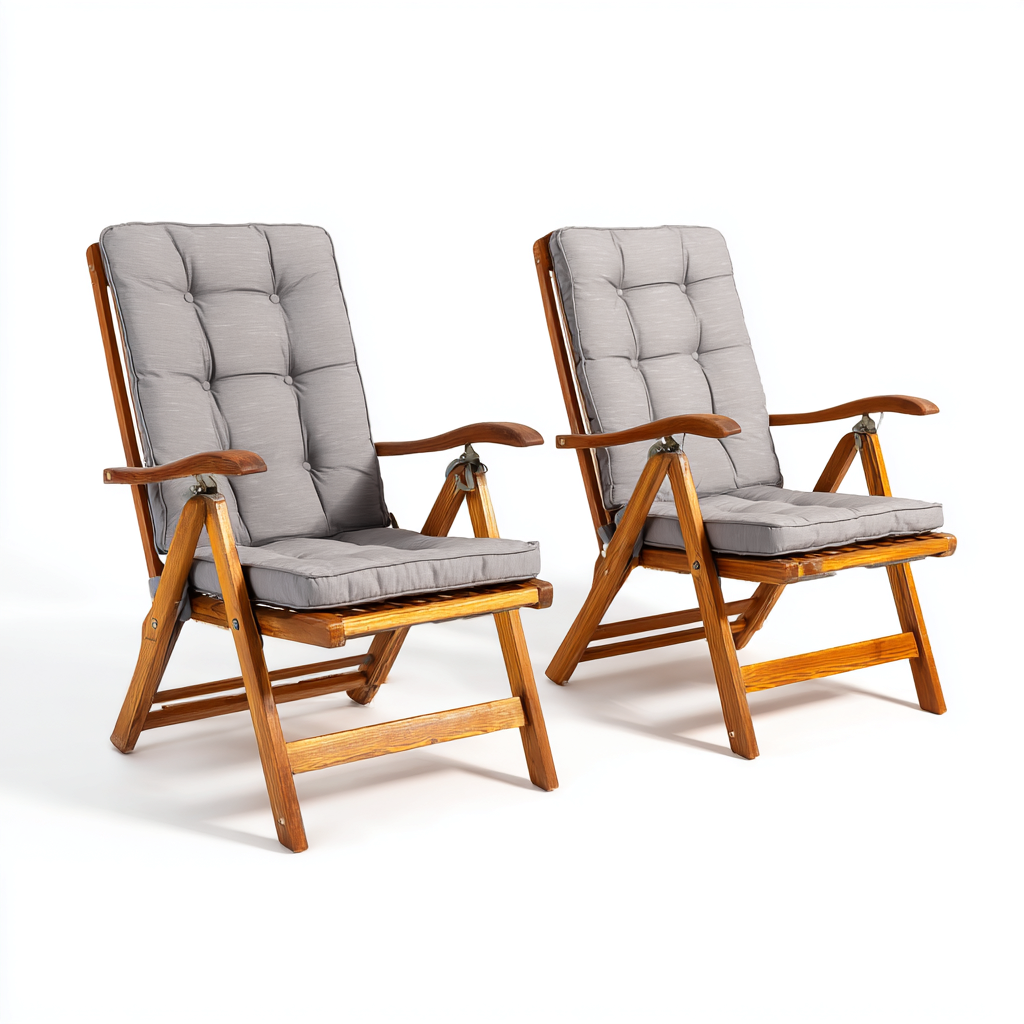 Lettino da sole set in legno con cuscini in tessuto 110x60x105 cm - legno naturale-grigio - design classico