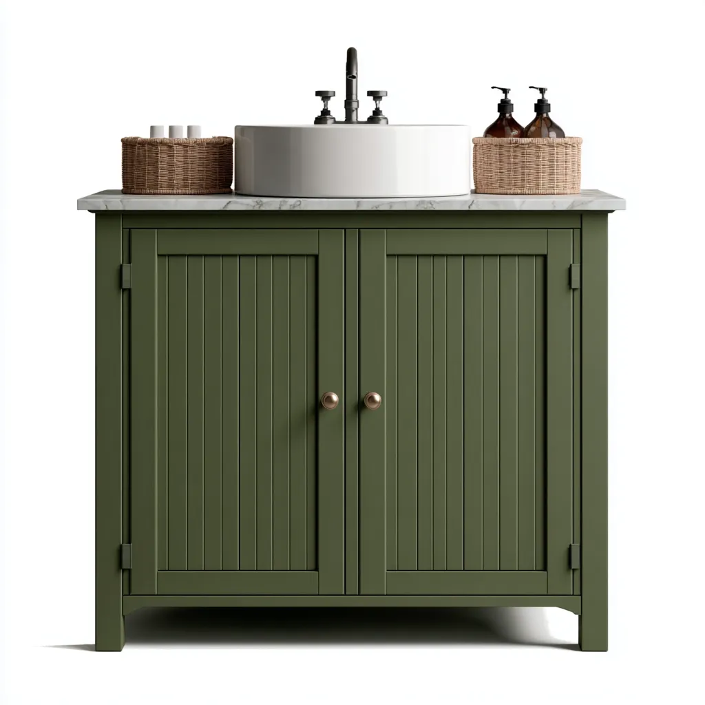 Mobile lavabo legno-marmo 90x50x86 cm - verde-bianco - design moderno - adatto per bagno