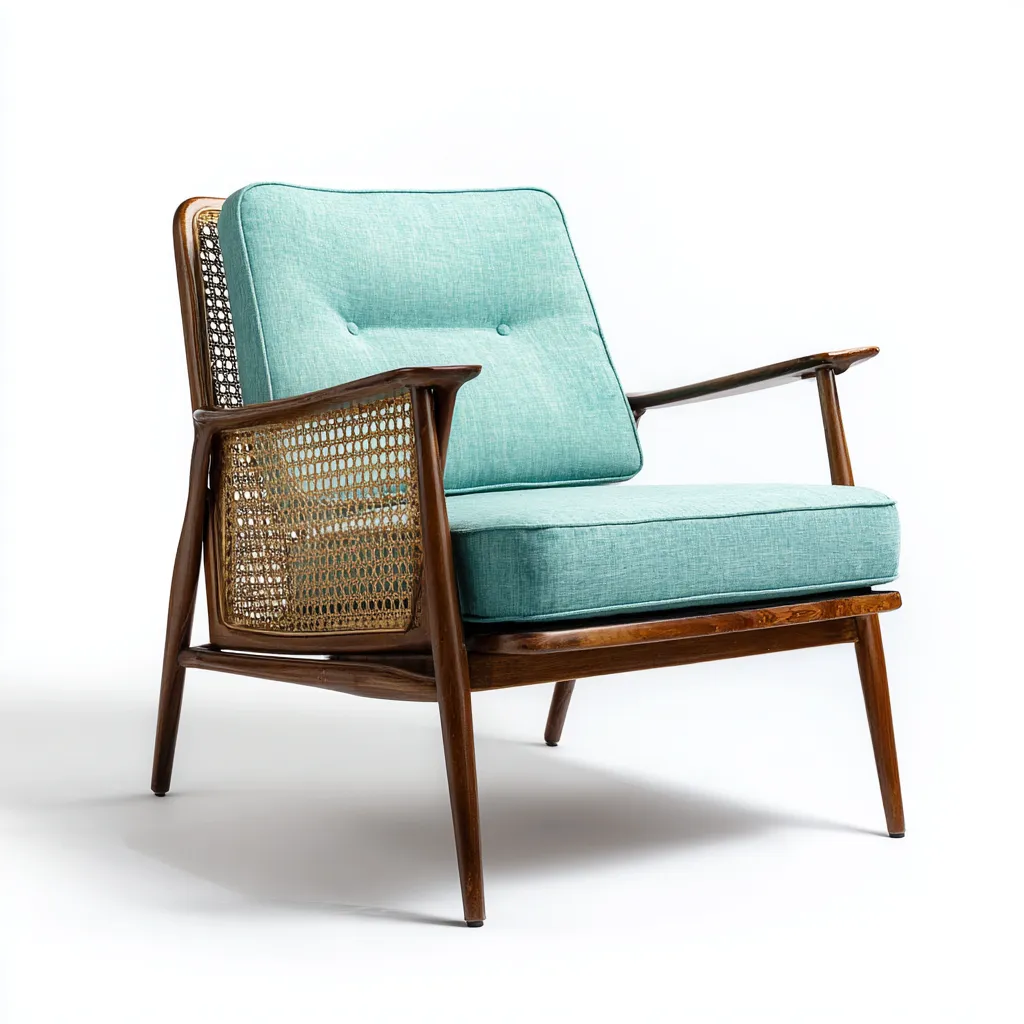 Poltrona in legno e rattan 75x80x90 cm - turchese - design vintage