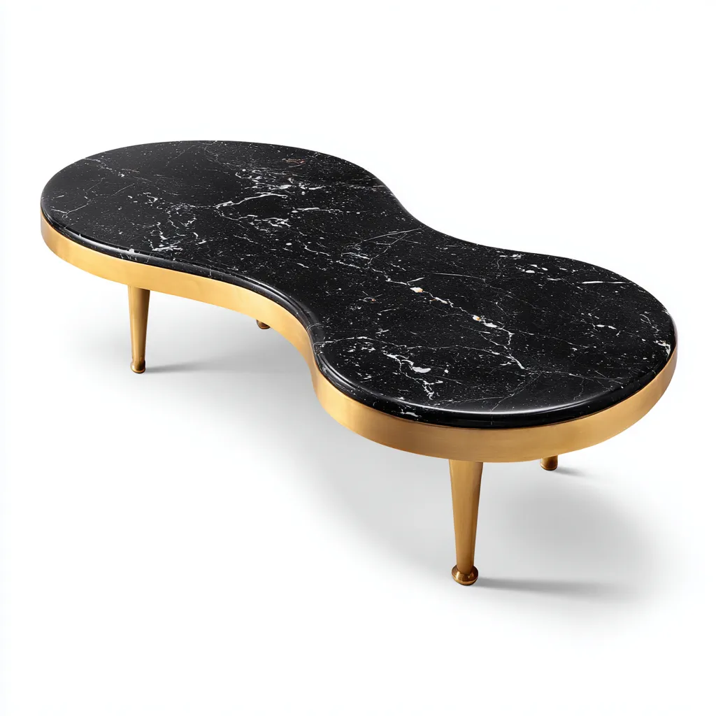 Tavolino da caffè 120x60x38 cm - piano in marmo nero e struttura in metallo dorato - nero-oro - design moderno